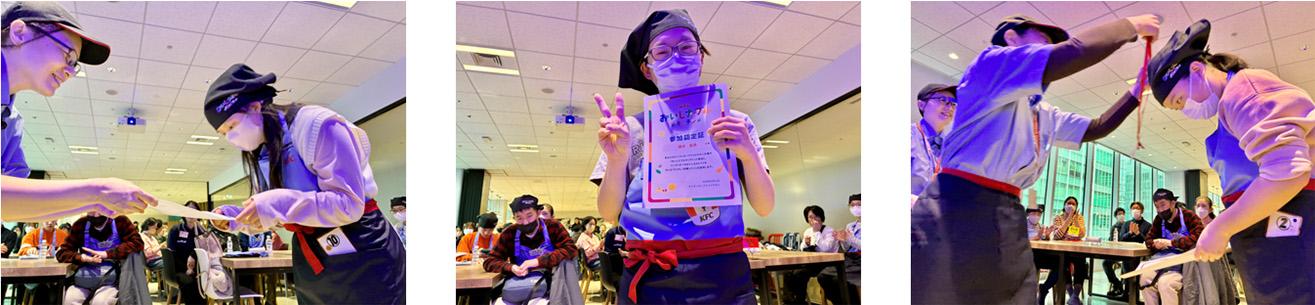 KFCおいしナブルキッチンの認定証とバーレル型メダルを贈呈しました。体験の記念として、皆さまにお持ち帰りいただきました。