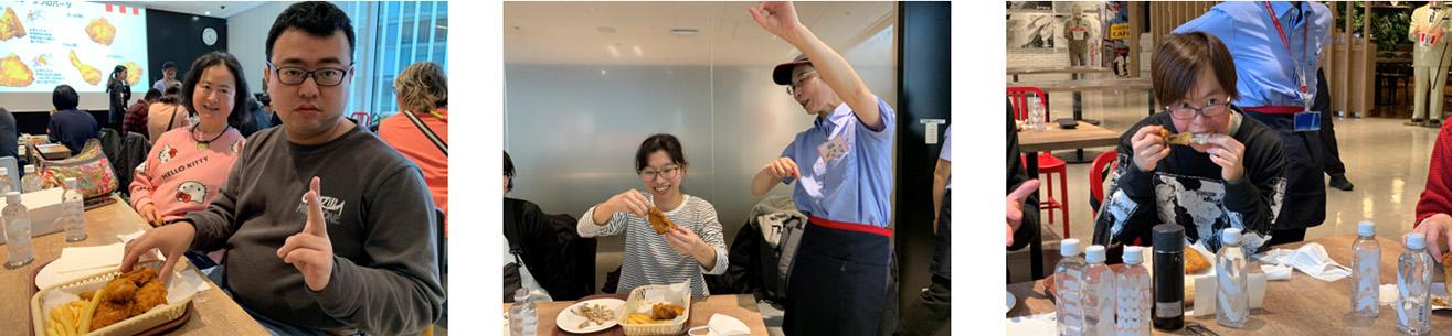 ・試食タイム:自分で粉付けした「オリジナルチキン」を試食