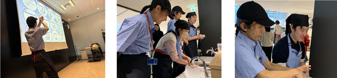 ・手洗い指導:KFC店舗で実施している衛生管理手法に基づく手洗い実習